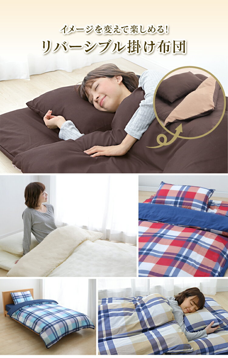 ※ 掛けカバーは表地(濃色カラー)裏地(淡色カラー)リバーシブルでご使用できます。